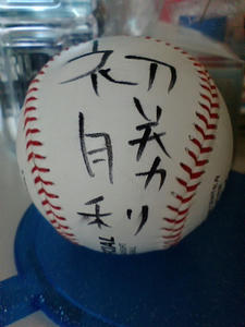 昨日は送別会の後、会社の子の家に泊まって来ました。その子の家になんちゃって松坂の初勝利だっていうボールが転がっていました。結婚式の二次会の景品で赤い靴下に入っていたそうです…もらっても迷惑だって言ってました。確かにそうだよね。