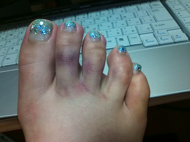 先週の火曜日に角に小指ぶつけて青タンできながらも